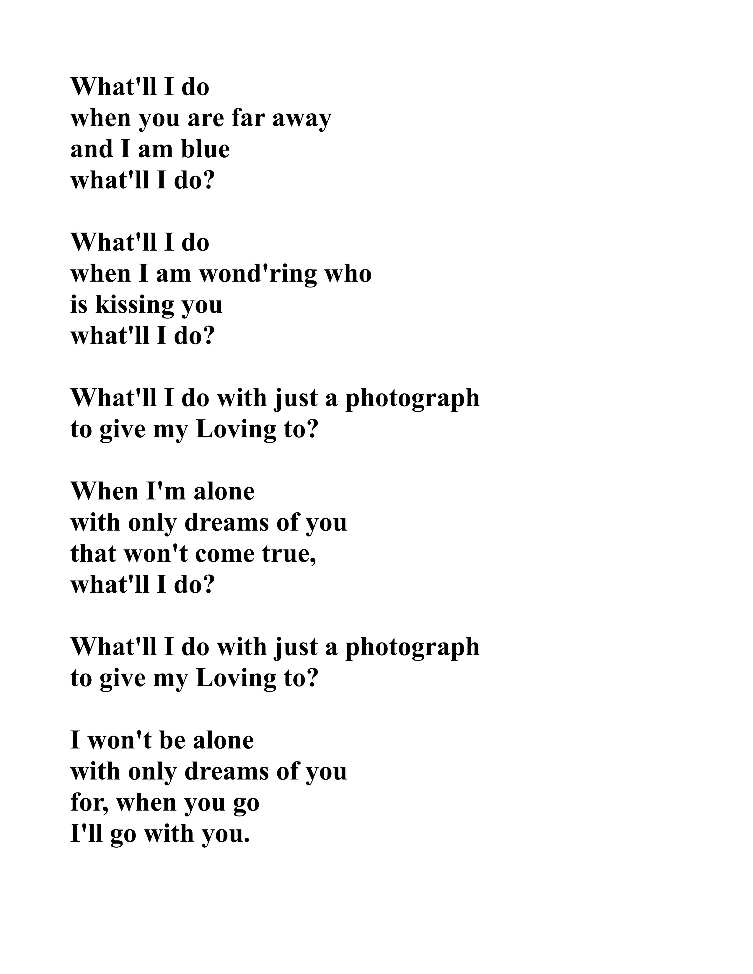 What'll I Do" is a song written by Irving Berlin in 1923. It's one of the few songs by Berlin that is clearly autobiographical. His fiancée, a society beauty named Ellin Mackay, had been sent to Europe by her disapproving father, a very wealthy Long Island magnate, in the hopes that MacKay would forget Berlin. (She did not and eventually they married.)